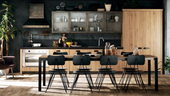 Последнее, что нужно адаптировать к стилю лофт на кухне, - это наушники. Цвет и материал фасадов мдф, отделка, наполнение фурнитурой - можно, экспериментов с мебелью - нет.